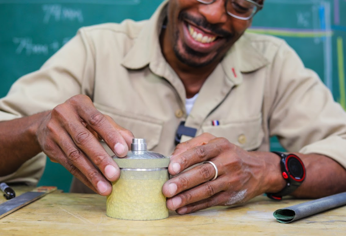 This prerecorded video demonstration will cover the fabrication of a pewter salt shaker with compression lines. The shaker will be made through simple forming and fabricating techniques in 16-gauge sheet pewter. Hydraulic-press compression will create decorative details in the form of the shaker. The techniques shown in this demonstration are welding, soldering, hydraulic-press compression, drilling, refill port and stopper construction, and surface texturing. NOTE: This project does not require previous experience, but it does require access to metalworking tools.